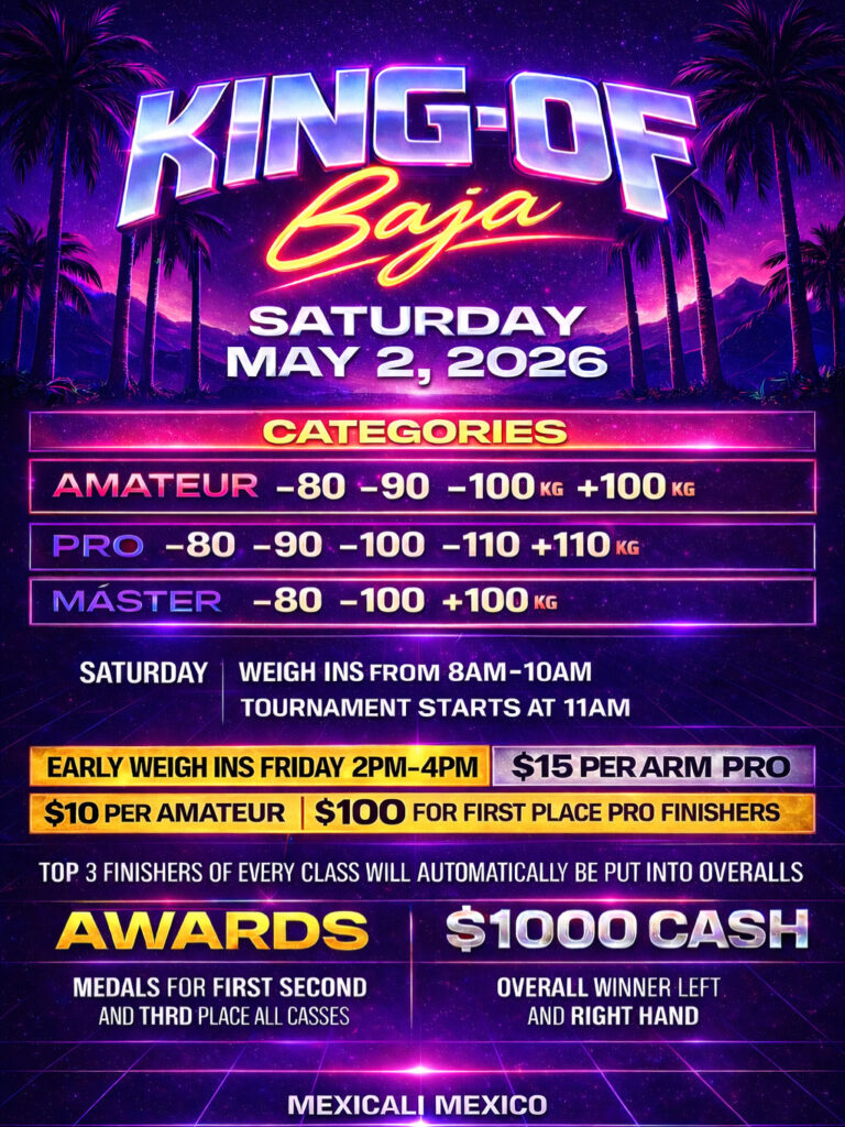 (MEXICO) King of Baja 00 days 00 hours 00 minutes 00 seconds Date May 02 2026 Time 11:00 am - 5:00 pm Local Time Timezone: America/Denver Date: May 02 2026 Time: 10:00 am - 4:00 pm Cost $15.00 State STATE NOT LISTED Highlights Cash Event Masters Divisions Available Promoter Greg Brown TV Phone 520-909-4317 Email browny2020@rockmail.com Share this event
