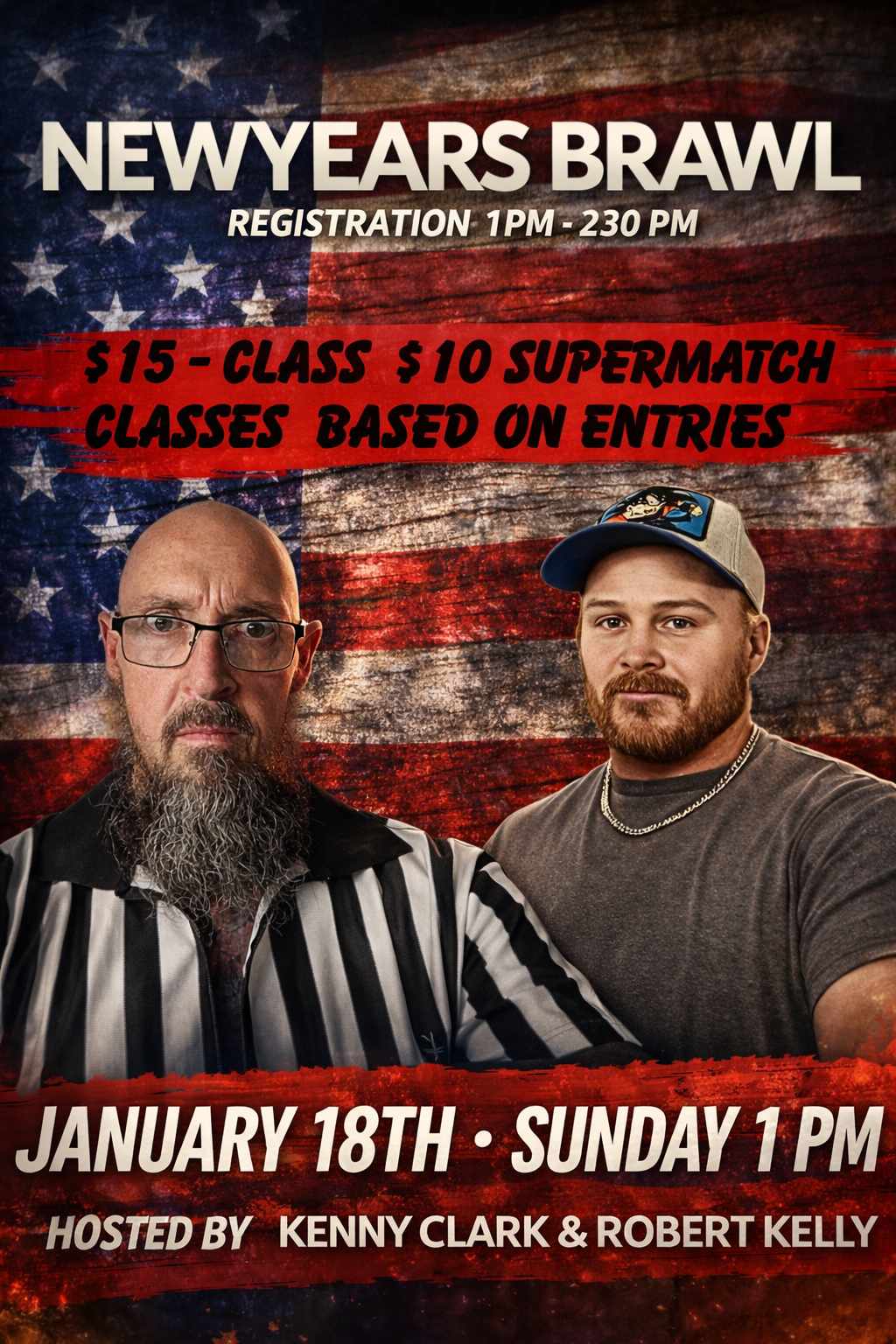 (OK) New Years Brawl 00 days 00 hours 00 minutes 00 seconds Date Jan 18 2026 Time 1:00 pm - 6:00 pm Local Time Timezone: America/New_York Date: Jan 18 2026 Time: 2:00 pm - 7:00 pm Cost $15.00 More Info Facebook Event Page State Oklahoma Highlights Live Broadcast Promoter Robert Kelly Website https://armwrestling.live/ Facebook Event Page Share this event
